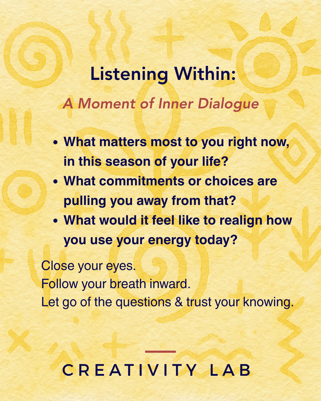 Let today’s quote meet you where you are. Read it slowly. Feel the words in your body, not just your mind. Notice what resonates, what softens, what begins to stir. This reflection prepares the inner field. It opens space for what wants to be heard within, in relation to today’s invitation.